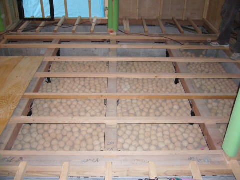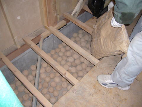 マッドボールは、床下に敷き詰めるだけの簡単施工です。