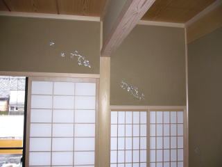 M様邸の和室に螺鈿(らでん)アートシールを貼りました。