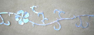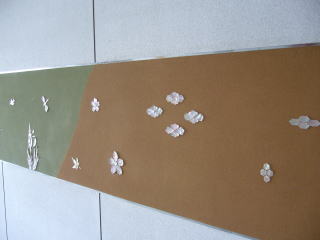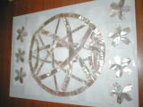 本社の2階事務所前の壁の一部に、螺鈿(らでん)アートシールを貼り付けました。